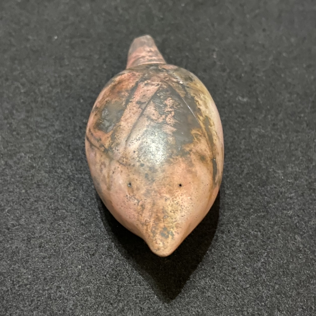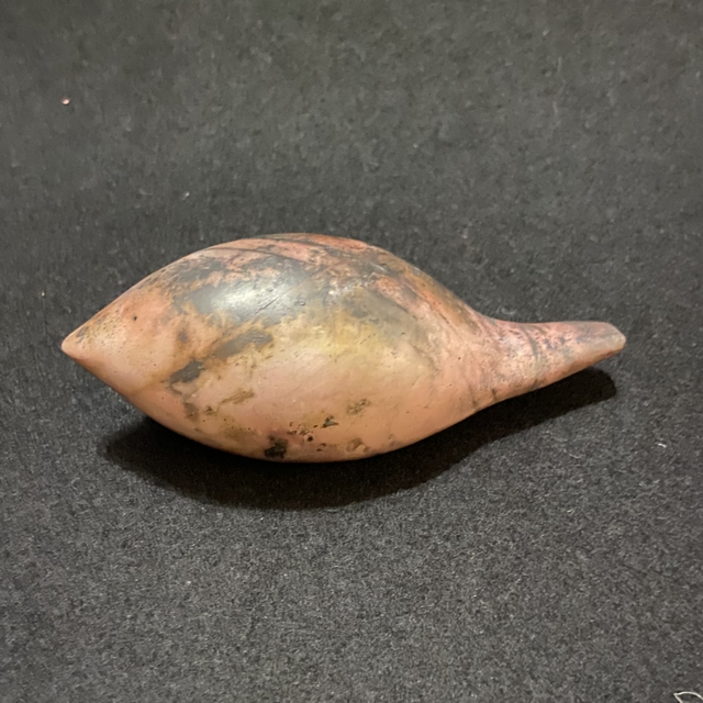 After refining the form 3 coats of a fine slip called Terra Sigillata is applied, this piece has added pink to give a lovely hue. Then burnishing starts, burnishing or polishing the clays surface.