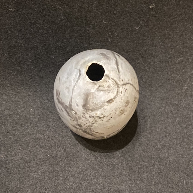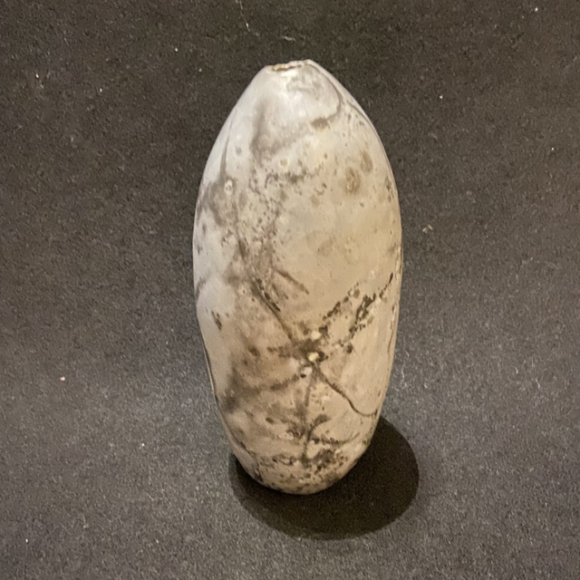 This piece has been hand built using the pinching process, using Ashraf Hannah clay. Ashraf Hannah clay is a beautiful white colour and highly grogged or textured, the grog is essential in the Saggar firing, adding strength to the clay to absorb the thermal shock.