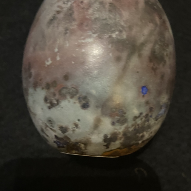 After refining the form 3 coats of a fine slip called Terra Sigillata is applied, this piece has added blue to give a lovely hue. Then burnishing starts, burnishing or polishing the clays surface.