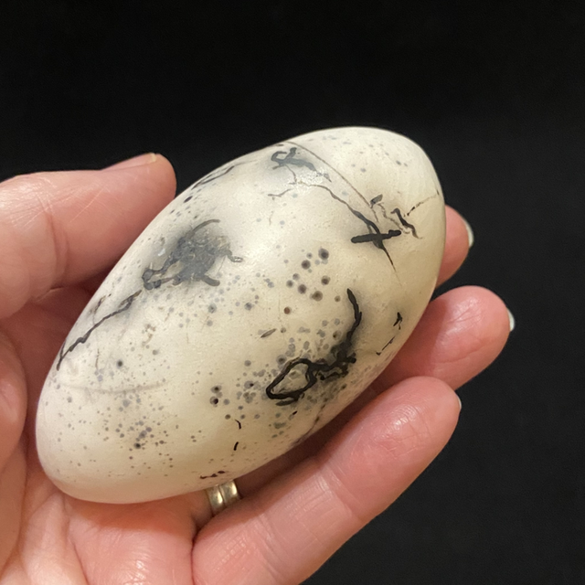 This piece has been hand built using the pinching process, using Ashraf Hannah clay. Ashraf Hannah clay is a beautiful white colour and highly grogged or textured, the grog is essential in the Raku firing, adding strength to the clay to absorb the thermal shock.